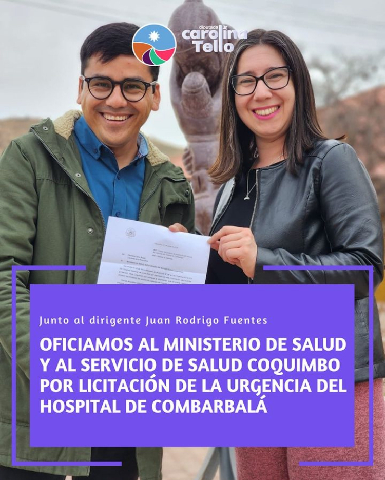 A través de un oficio dirigido al Ministerio de Salud, la diputada Carolina Tello solicitó que el Servicio de Salud de Coquimbo informe respecto al proyecto de remodelación y ampliación del Servicio de Urgencias del Hospital de Combarbalá. La inversión incluye nuevos espacios de salas de reanimación, de categorización, salas de cuidados, salas gineco-obstétrica, oficinas multipropósitos y nuevos baños entre otras mejoras.