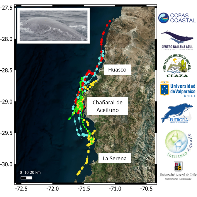 Se trata de un esfuerzo conjunto del centro COPAS Coastal (UDEC), Centro Ballena Azul, CEAZA, Universidad de Valparaíso, Centro Eutropia, Instituto Aqualie y la Universidad Austral de Chile, el que consiste en el seguimiento de 4 ballenas fin, la segunda ballena más grande del mundo y la más común en el archipiélago de Humboldt (regiones de Atacama y Coquimbo). Este enclave atrae a turistas para admirar su monumentalidad, como también es un laboratorio natural para los científicos que están estudiando su comportamiento con el objetivo de conservar a esta especie clave para la salud del océano.