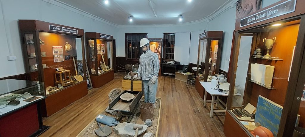 En otra sala, los visitantes pueden conocer objetos como cascos y viandas, además de maquetas que representan las minas, además de vestigios de cuñas, picotas, lámparas y otros instrumentos y un corolario, que enaltece la labor del pequeño minero y el dirigente sindical de los pirquineros.