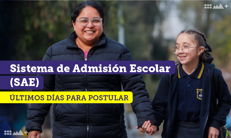 El viernes 30 de agosto, a las 14:00 horas, termina el plazo para que las familias postulen a establecimientos a través del Sistema de Admisión Escolar (SAE), la plataforma del Ministerio de Educación para obtener un cupo en la educación pública o particular subvencionada.